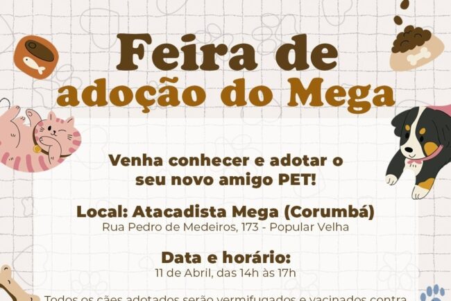 Evento acontece no Atacadista Mega, no bairro Popular Velha, e inclui vacinação contra raiva e viroses, além de apoio para castração de filhotes A população de Corumbá terá uma nova oportunidade de adotar um animal de forma responsável durante a Feira de Adoção do Mega, […]