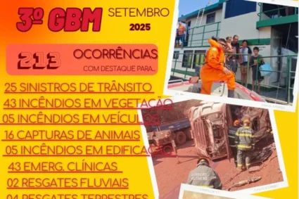 O 3º Grupamento de Bombeiros Militar de Corumbá (3º GBM) registrou 213 ocorrências ao longo de setembro de 2025. As ações envolveram desde acidentes de trânsito até incêndios em vegetação, além de resgates terrestres, aéreos e fluviais. Ocorrências em Destaque Entre os principais atendimentos realizados […]