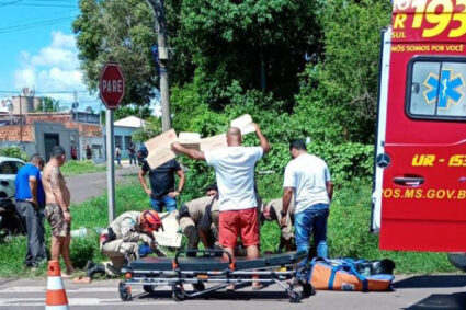 Colisão entre moto e carro deixa mãe e filha feridas em Corumbá