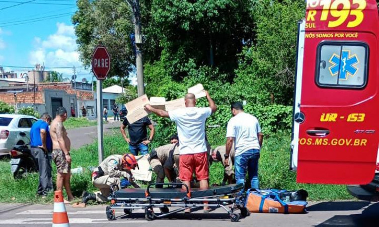 Equipes do Corpo de Bombeiros Militar e do Samu (Serviço de Atendimento Móvel de Urgência) realizaram o resgate de uma mulher de 70 anos e sua filha de 49 anos, após um acidente que envolveu a moto em que estavam e um carro. O incidente ocorreu por volta das 13h25, no cruzamento das ruas Sargento Aquino e São Pedro, em Corumbá.