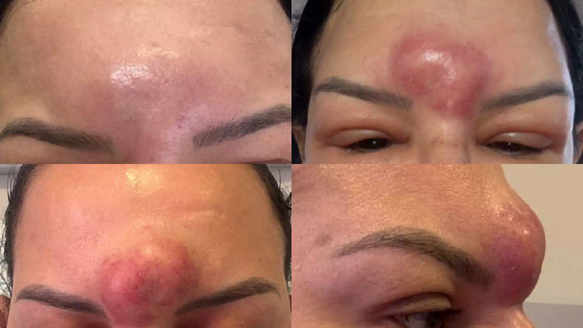 No dia seguinte à segunda sessão, a paciente percebeu o surgimento de uma bolha de grandes proporções na testa, exatamente no local da aplicação. Com o passar dos dias, o quadro teria evoluído para inchaço intenso, vermelhidão e dores, mesmo após retornos à clínica e novos procedimentos.