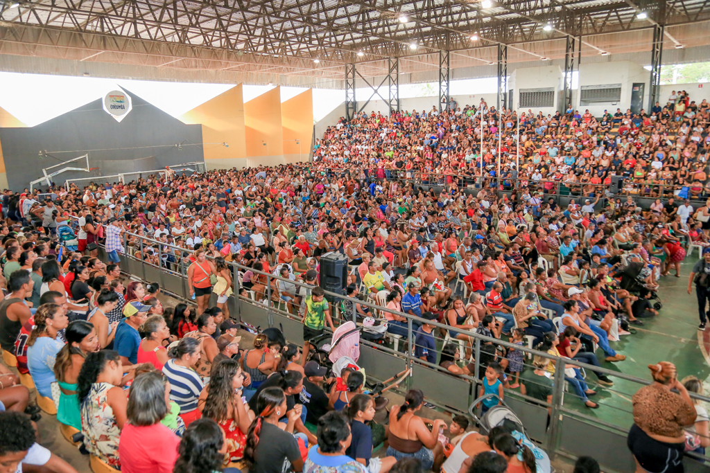 Cerimônia realizada no Ginásio Lucílio de Medeiros definiu os contemplados dos residenciais Ipês I e II, no bairro Guató, com foco em famílias de baixa renda e grupos prioritários